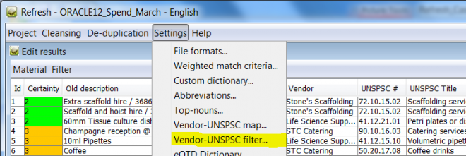 The University purchasing team and especially the lead purchasing analyst was extremely good at describing possible enhancements in the Refresh tool. These were incorporated in a delta Refresh version and rolled into the general product in record time. One of these key enhancements was a way to match especially cryptic purchase order descriptions to UNSPSC through hints and filters related mainly to the vendor type: