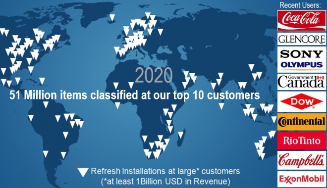 Despite the ongoing pandemic, 2020 saw significant increases in all of our key metrics including a large increase in data under management - the number of items in-scope worldwide. North America continued to hold on to first place by the number of customers (especially driven by data stewards and data cleansers working from home), closely followed by Europe. All zones have enjoyed growth in Refresh customers, including large mining and materials projects in Africa, Asia-Pacific and the Middle East. A number of well-known Fortune Global 500 customers signed up and all industry sectors remain well represented. Customer retention and new customer growth in our traditional asset-intensive industries (such as commodity producers) were highlights, but also new large pockets of growth in groceries and healthcare businesses. The latest continually updated summary report can be found here.